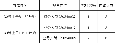 1、面試方式:財(cái)務(wù)人員(2024003)崗位采取半結(jié)構(gòu)化面試的方式進(jìn)行,業(yè)務(wù)人員(2024001)崗位、業(yè)務(wù)人員1(2024002)崗位采取半結(jié)構(gòu)化+實(shí)操面試的方式進(jìn)行;