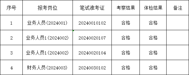 根據(jù)《亳州市譙城區(qū)魏武工程管理咨詢有限責(zé)任公司2024年工作人員公開(kāi)招聘公告》相關(guān)規(guī)定,現(xiàn)將擬入圍對(duì)象體檢、考察結(jié)果公示如下: