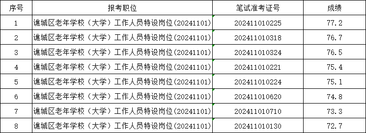 根據(jù)《2024年譙城區(qū)老年學(xué)校(大學(xué))工作人員特設(shè)崗位公開招聘》有關(guān)規(guī)定,現(xiàn)將2024年譙城區(qū)老年學(xué)校(大學(xué))工作人員特設(shè)崗位公開招聘擬入圍體檢、考察工作有關(guān)事項(xiàng)公告如下: