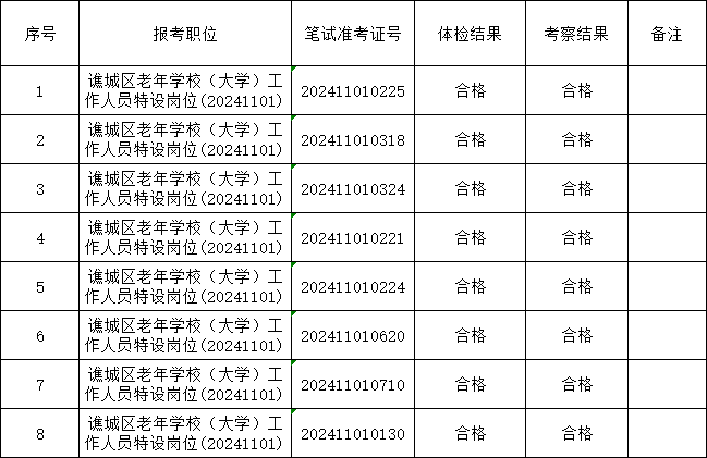 關(guān)于2024年譙城區(qū)老年學(xué)校(大學(xué))工作人員特設(shè)崗位公開招聘擬入圍人員體檢、考察結(jié)果公示